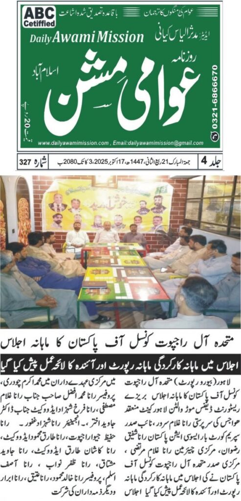 متحدہ آل راجپوت کونسل آف پاکستان نے کی