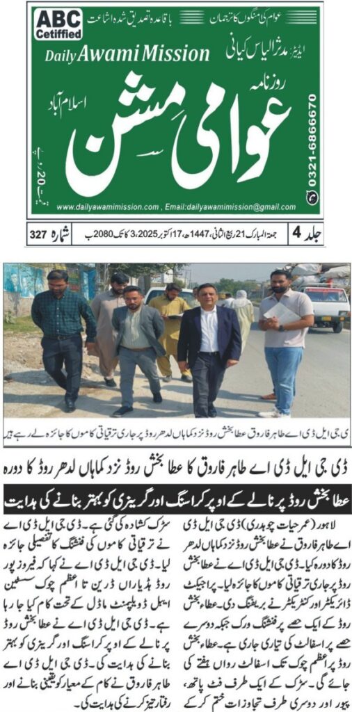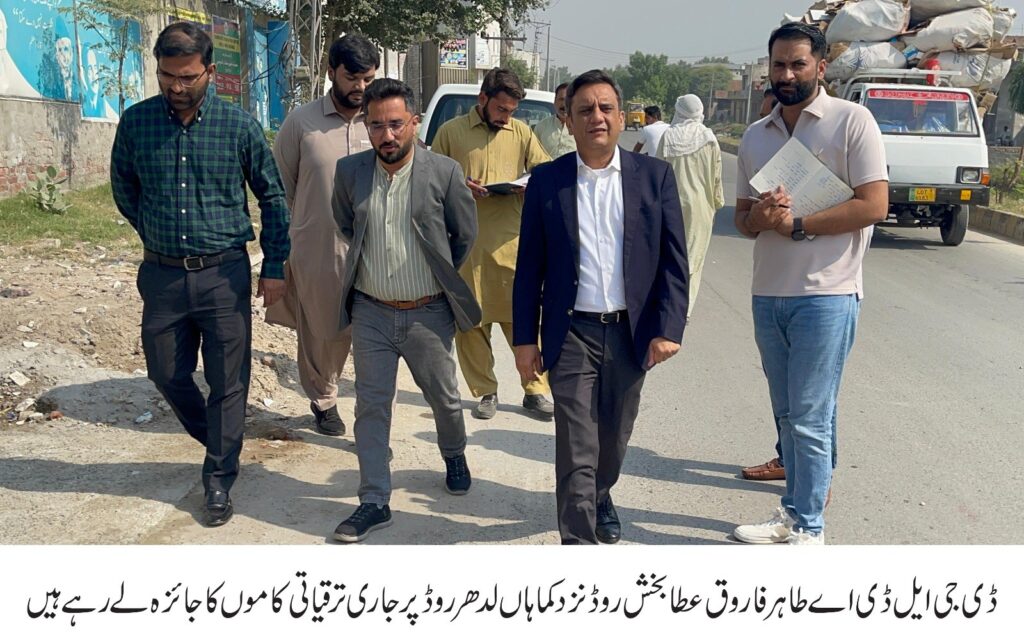 ڈی جی ایل ڈی اے طاہر فاروق کا عطا بخش روڈ نزد کماہاں لدھر روڈ کا دورہ، ترقیاتی کاموں کی فنشنگ کا تفصیلی جائزہ لیا۔