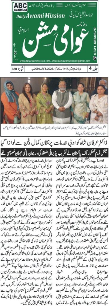 نیشنل فورم تھنکرز آف پاکستان کی تقریب میں ڈاکٹرعرفان شاہ کا پروفیسر شازیہ ظہور،ڈاکٹرفرحت عظیم ،پروفیسر شہناز نصیر،ڈاکٹریاسمین سلطانہ اورطوبیٰ خواجہ کے ہمراہ گروپ فوٹو