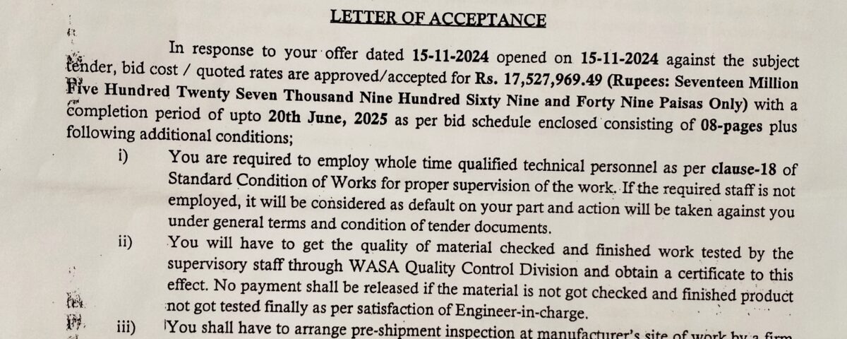 لاہور (نیوز انویسٹی گیشن سیل) محکمہ واسا لاہور کی راوی ٹائون 2ڈویژن میں ترقیاتی کاموں کے “ٹھیکے ونڈی دے لئی جاو” کی گونج ہر سوں پھیل گئی اختیارات کے ناجائز استعمال سے ایکسین و ماتحت عملہ سمیت بے نامی نان رجسٹرڈ ٹھیکیداروں کو ذاتی مالی فوائد جبکہ سرکاری خزانے کو بھاری نقصان ہونے پر بھی ہر سوں ہلچل مچ گئی تفصیلات کے مطابق راوی ٹائون O&M-2 ڈویژن کے ایکسین ذیشان منظور کی جانب سے اختیارات کا ناجائز استعمال اور نان رجسٹرڈ فرموں کو کروڑوں مالیت کے ٹھیکے ایوارڈ کرنے کا ہولناک انکشاف سامنے آیا ہے موصوف نے نومبر2024میں تین عدد ٹینڈرز جن کی ٹوٹل تخمینہ مالیت تقریباً05کروڑ تھی ایک بے نامی، نان رجسٹرڈ،بغیر PECلائسنس والی “NBH & Co” فرم کو ایوراڈ کئے حالانکہ اس فیک ،جعلی فرم کا ڈیٹا /رجسٹریشن کسی بھی سرکاری ادارے میں موجود ہی نہیں اور نہ اس نام کی فرم کے مالک کا شناختی کارڈ نمبر سمیت دیگر متعلقہ ڈیٹا کسی بھی ادارے میں موجود ہے موصوف نے ٹھیکہ دے کر اپنے گلے احتسابی پھندہ ڈالنے کا انتظام کر لیا افسوس در افسوس راوی ٹائون نمبر2 کے ایکسین نے کام بھی 2نمبر کرنے کا دانستہ غیر قانونی راج بنا رکھا ہے موصوف ذیشان منظور کی قلم سے فیک فرموں کے ٹھیکے منظور ہوتے چلے جا رہے ہیں وزیر اعلیٰ پنجاب سے اپیل کی جاتی ہے کہ اس کا نوٹس لیکر صاف شفاف انکوائری کروائی جائے اور خطیر رقم کی ریکوری کروا کر سرکاری خزانے میں جمع کروائی جائے اور ملزمان کو قانون کے مطابق قرار واقعی سزا دی جائے
