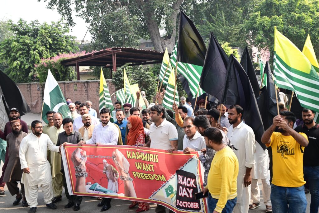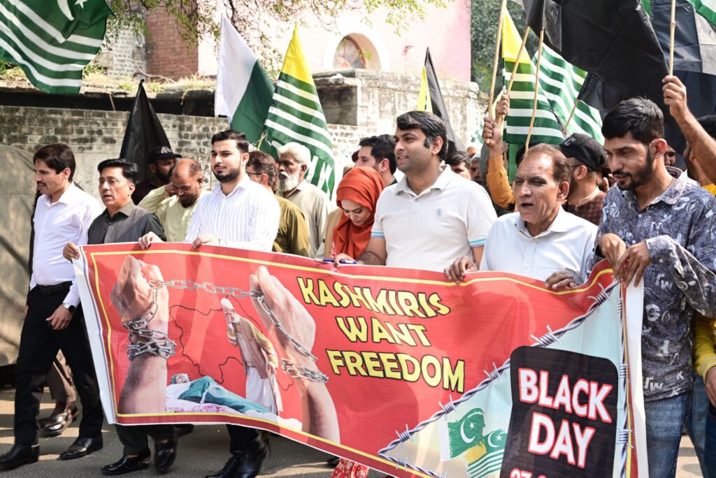 ریلی کے شرکاء نے کشمیر اور پاکستان کے پرچموں کے ساتھ ساتھ سیاہ جھنڈے بھی اٹھا رکھے تھے جبکہ کشمیر کی آزادی اور بھارتی مظالم کے خلاف فلک شگاف نعرے بھی لگائے گئے۔