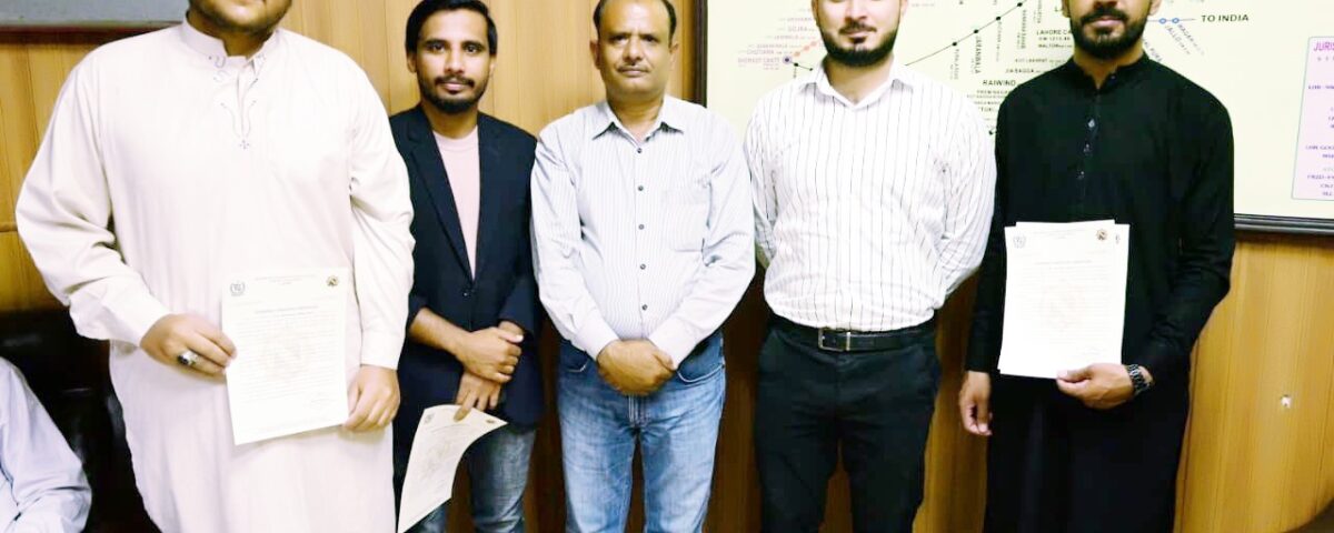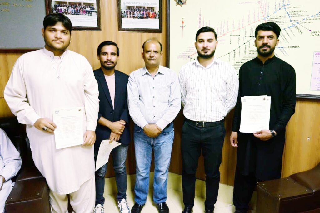 انٹرنشپ کی تکمیل پر طلبہ کو ڈویژنل کمرشل آفیسر ریلوے، عدنان مروت نے تعریفی اسناد پیش کیں۔