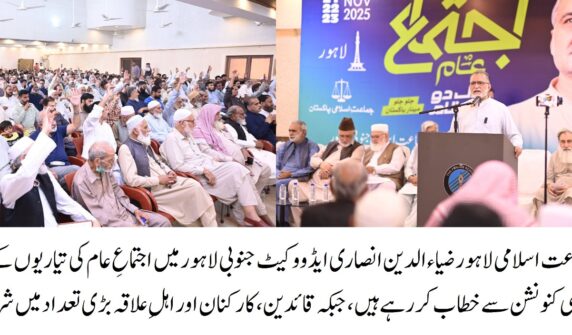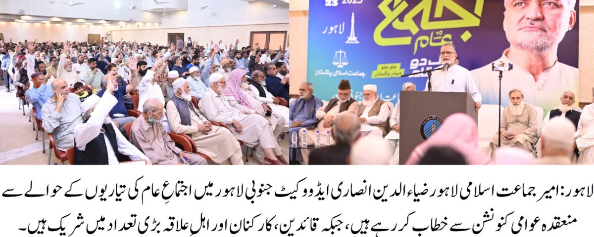 امیرجماعت اسلامی لاہور ضیاء الدین انصاری ایڈووکیٹ کا اجتماع عام کے سلسلے میں جنوبی لاہور میں عوامی کنونشن سے خطاب