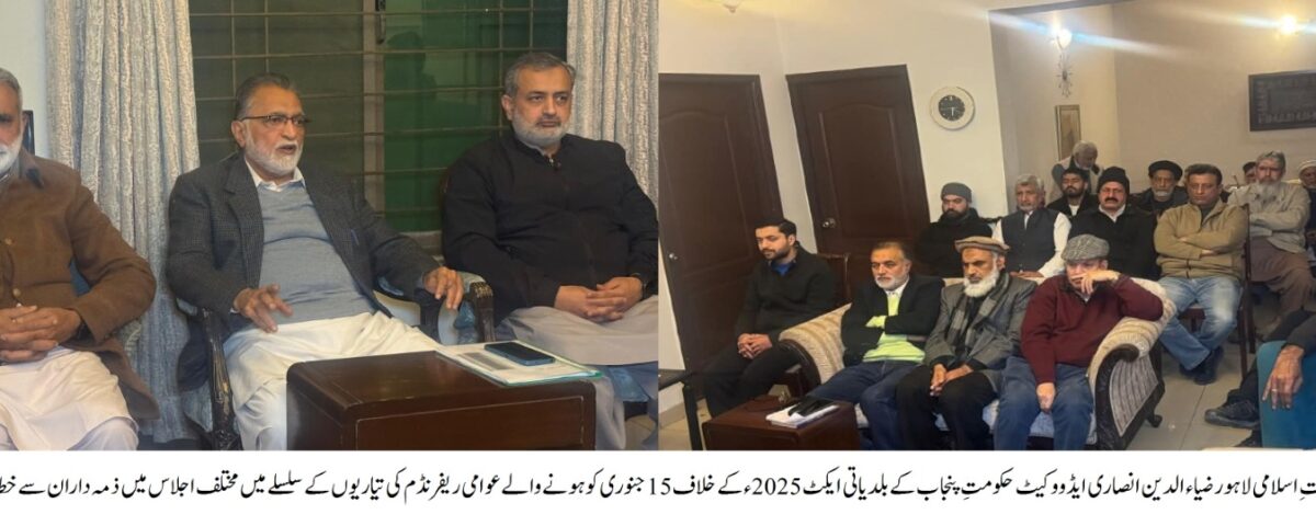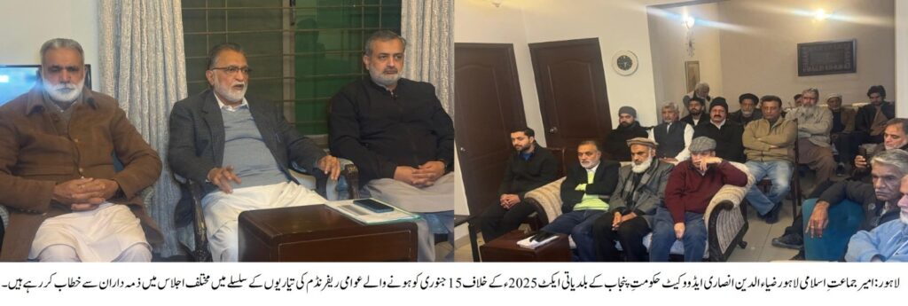 امیرجماعت اسلامی لاہور ضیاء الدین انصاری ایڈووکیٹ کا 15 جنوری کوعوامی ریفرنڈم کی تیاریوں کے حوالے مختلف اجلاسوں میں ذمہ داران سے خطاب