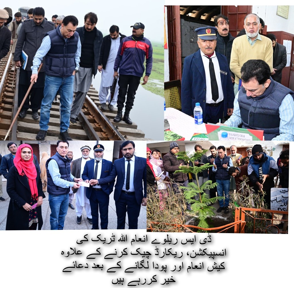 اسٹیشن بلڈنگز، دیگر انفراسٹرکچر اور اسٹیشن ریکارڈز کا جائزہ لیا گیا۔ اس موقع پر ڈی ایس ریلوے انعام اللہ نے ہدایت کی کہ اسٹیشن ریکارڈ ہر لحاظ سے مکمل اور اپ ڈیٹ ہونا چاہیے۔ ٹریک فٹنس کے حوالے سے گینگ نمبر 15 کے کام کا خصوصی معائنہ کیا گیا۔ مختلف اسٹیشنوں پر صفائی ستھرائی، مسافروں کو دستیاب سہولیات، انتظار گاہوں، واش رومز اور دیگر دفاتر کا بھی تفصیلی جائزہ لیا گیا۔