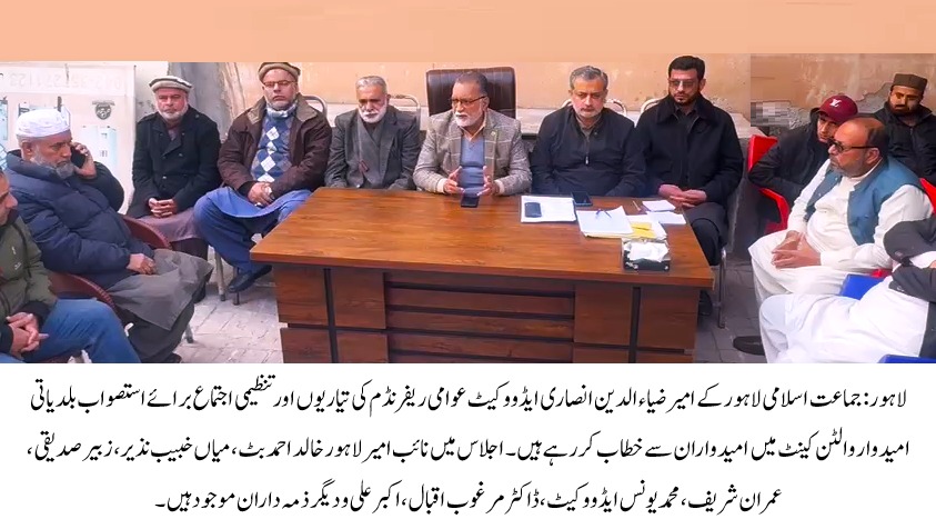امیرجماعت اسلامی لاہور ضی2اء الدین انصاری ایڈووکیٹ کا عوامی ریفرنڈم کی تیاریوں کے سلسلے ذمہ داران کے اجلاسز سے خطاب