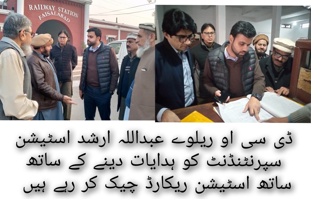 ڈی ایس ریلوے انعام اللہ کی ہدایت پر ڈویژنل کمرشل آفیسر عبداللہ ارشد نے فیصل آباد ریلوے اسٹیشن کا دورہ کیا۔