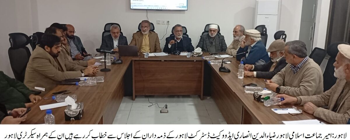 امیرجماعت اسلامی لاہور ضیاء الدین انصاری ایڈووکیٹ کا ڈسٹرکٹ لاہور کے ذمہ داران سے اجلاس