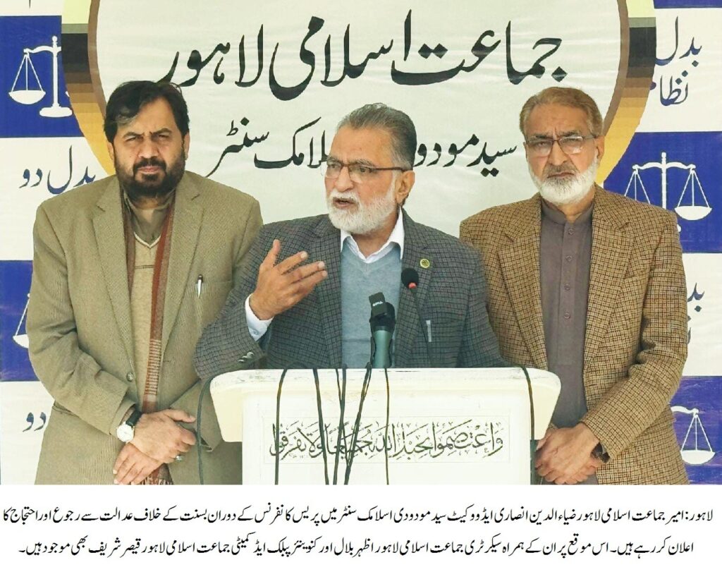 امیرجماعت اسلامی لاہور ضیاء الدین انصاری ایڈووکیٹ کا سید مودودی اسلامک سنٹر میں پریس کانفرنس سے خطاب