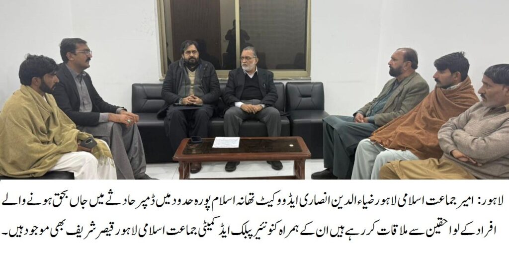 ڈمپر حادثے میں جاں بحق افراد کے لواحقین انصاف کیلئے دفتر جماعت اسلامی لاہور پہنچ گئے۔
