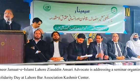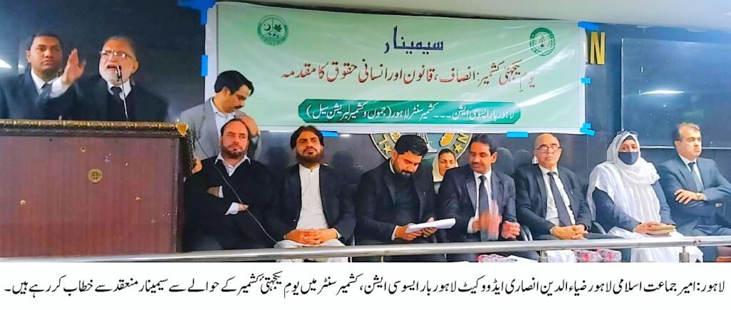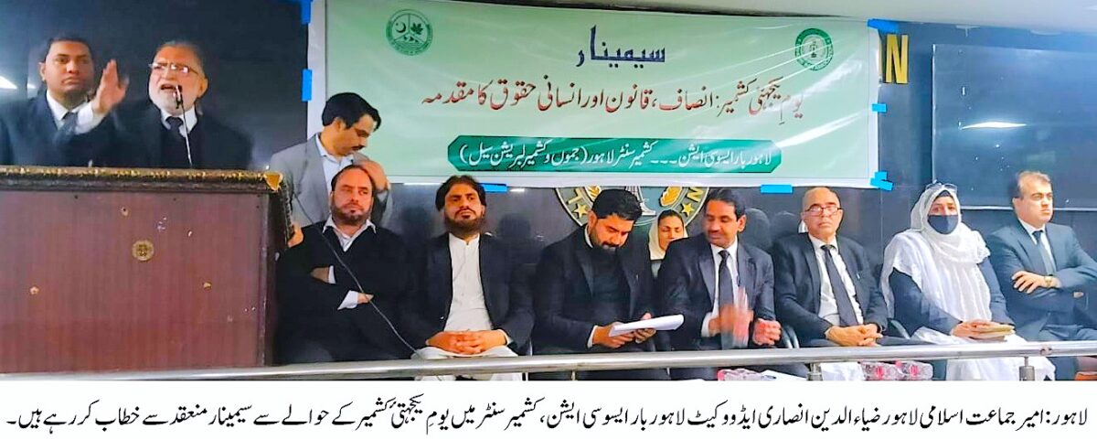 امیرجماعت اسلامی لاہور ضیاء الدین انصاری ایڈووکیٹ کا یومِ یکجہتیٔ کشمیرسیمینار سے خطاب