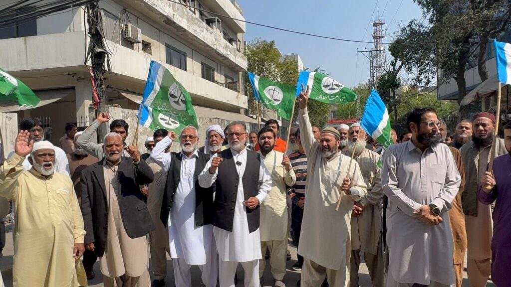 امیر جماعت اسلامی لاہور ضیاء الدین انصاری ایڈووکیٹ کا لٹن روڈ پر امریکہ اور اسرائیل کے خلاف ایران پر حملے کے خلاف اجتجاج سے خطاب