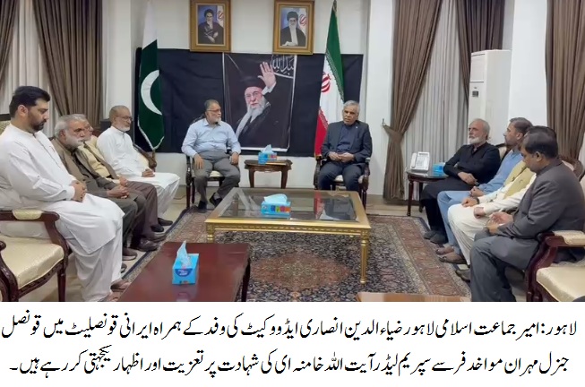 امیر جماعت اسلامی لاہورضیاء الدین انصاری ایڈووکیٹ کی ایرانی قونصلیٹ آمد، اظہارِ تعزیت اور یکجہتی