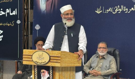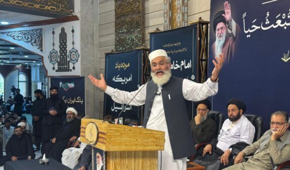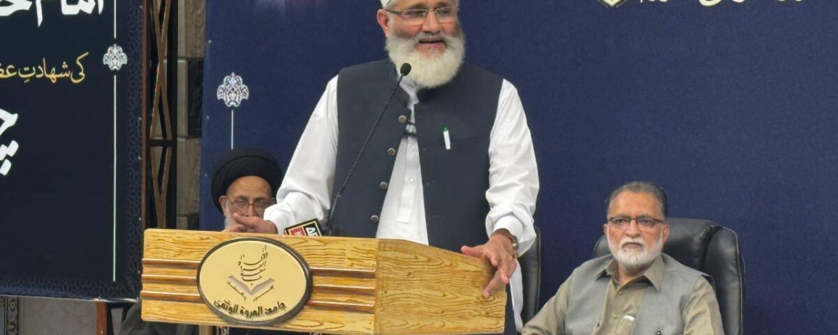 سابق امیر جماعت اسلامی پاکستان سراج الحق، مجلس وحدت المسلمین کے سربراہ راجہ ناصر عباس، اور سید جواد نقوی کا خطاب