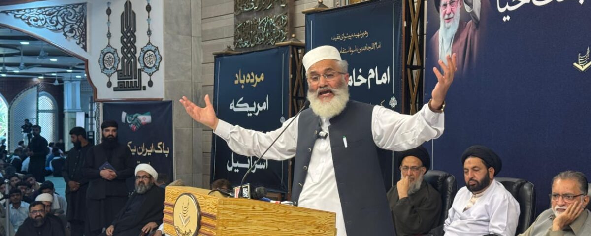 Lahore: A grand “Pakistan-Iran Solidarity Gathering” was held at Jamia Urwat-ul-Wusqa on the occasion of the Chehlum of the Supreme Leader of the Islamic Revolution. The event was presided over by the head of Tehreek Bedari Ummat-e-Mustafa (PBUH), Allama Syed Jawad Naqvi.The gathering witnessed enthusiastic participation from men and women belonging to both Sunni and Shia schools of thought, prominent religious scholars, intellectuals, journalists, and individuals from various walks of life. Key speakers included the head of Majlis Wahdat-ul-Muslimeen, Allama Raja Nasir Abbas Jafri, former Ameer of Jamaat-e-Islami Pakistan, Siraj-ul-Haq, and Allama Syed Jawad Naqvi. Other distinguished attendees included President of Shia Ulema Council Punjab Allama Ishtiaq Hussain Kazmi, President of Wifaq-ul-Madaris Al-Shia Pakistan Allama Hafiz Riaz Hussain Najafi, Chairman Ummat-e-Wahida Allama Muhammad Amin Shaheedi, President Nizam-ul-Madaris Pakistan Dr. Mir Asif Akbar, and Ameer Jamaat-e-Islami Lahore Zia-ud-Din Ansari Advocate.