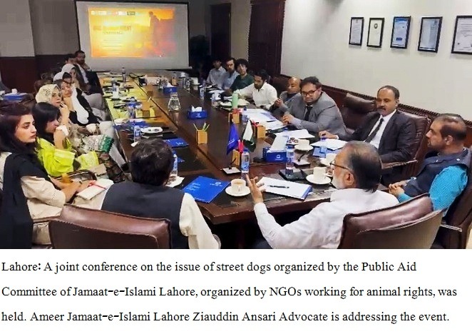 Lahore (Umar Hayat CH):A significant joint conference was organized by the Public Aid Committee of Jamaat-e-Islami Lahore in collaboration with organizations working for animal rights. The conference focused on addressing the growing population of stray dogs in the city and related public safety concerns. Participants unanimously endorsed the eight-point agenda presented by Jamaat-e-Islami as a comprehensive solution to the issue.The conference was chaired by Ameer Jamaat-e-Islami Lahore, Mr. Zia-ud-Din Ansari, while President Public Aid Committee Qaiser Sharif and Secretary Shahid Naveed Malik, along with representatives from various NGOs, actively participated in the session.Prominent attendees included Advocate Altamash Saeed and Advocate Mian Ahmad Farooq (Environmental & Animal Rights Consultants Pakistan), Dr. Amina Ubaid Khawaja (LCWU Animal Welfare & Protection Society), Dr. Bilal (Punjab Police Animal Rescue Center), Fareeha (Storms Heart Rescue), representatives of Raffles Animal Welfare Registry, Barrister Masooma Bukhari (Farakhanda & Shehrat Bukhari Foundation), Aafia Khan (Give Us Life Animal Welfare), Musa Shoaib (Todds Welfare Society), and Syed Mohsin (Comprehensive Disaster Response Services – Animal Welfare Benji Project).This conference was part of Jamaat-e-Islami’s ongoing public campaign regarding “Street Dogs.” Addressing the participants, Mr. Zia-ud-Din Ansari emphasized that Islam teaches compassion towards animals and that indiscriminate killing of stray dogs is neither humane nor a sustainable solution.He stressed the adoption of scientific and humane methods such as Catch-Neuter-Vaccinate-Release (CNVR), which can ensure public safety while effectively controlling the animal population.NGO representatives appreciated the eight-point agenda and pledged their full cooperation with Jamaat-e-Islami, particularly in fieldwork and technical support.At the conclusion of the conference, participants urged the district administration to move away from outdated practices and implement the proposed recommendations of the Public Aid Committee. It was unanimously agreed that maintaining a balance between public safety and animal welfare is the need of the hour.