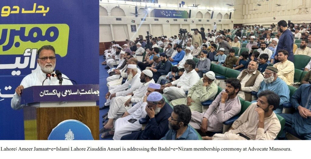 Lahore: Ameer Jamaat-e-Islami Lahore, Zia-ud-Din Ansari Advocate, has stated that the overwhelming public response to the membership campaign is a clear vote of no confidence against the corrupt system. He said that Jamaat-e-Islami Lahore will organize membership camps across the city and establish public committees to address issues at the grassroots level.He expressed these views while addressing the “Badlo Nizam” (Change the System) membership ceremony held in Mansoorah. He said that real and sustainable change in the country is no longer possible without transforming the existing system, as public problems cannot be resolved under the current setup.Criticizing government policies, he said that rulers who came into power through Form-47 are burdening the public with inflation. Approximately Rs. 150 per liter is being charged in petroleum levy and taxes, while on the other hand, the ruling elite continues to indulge in luxuries. He alleged that an aircraft worth Rs. 11 billion has been purchased for the Chief Minister of Punjab, a vehicle worth Rs. 90 million for the Chairman Senate, while the bureaucracy enjoys perks such as free fuel and free electricity.He further stated that to change this outdated system, the entire nation—especially the youth—must support Jamaat-e-Islami. Every worker must take the party’s message to every home and individual at the grassroots level and make the membership campaign successful.Zia-ud-Din Ansari added that Jamaat-e-Islami is striving for a just, transparent, and people-friendly system, and the growing public participation is clear evidence that people want to get rid of the current system.